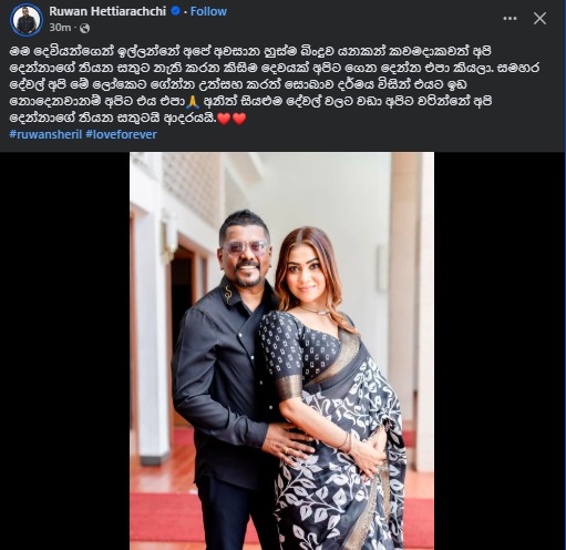 හදිසියේම රෝහල්ගත වෙන්නට සිදුවුණු ශෙරිල් වෙනුවෙන් රුවන් මෙන්න මේ වගේ පැතුමක් එක්ක Stories පළ කළා වගේම මුහුණු පොතටද විශේෂ සටහනක් එක්කරලා තිබුනේ ඔවුන් දෙදෙන්නාගේ නොසැලෙන ආදරය, ඒ බැඳීම ගැන නැවත වතාවක් සිහිපත් කරමින්..